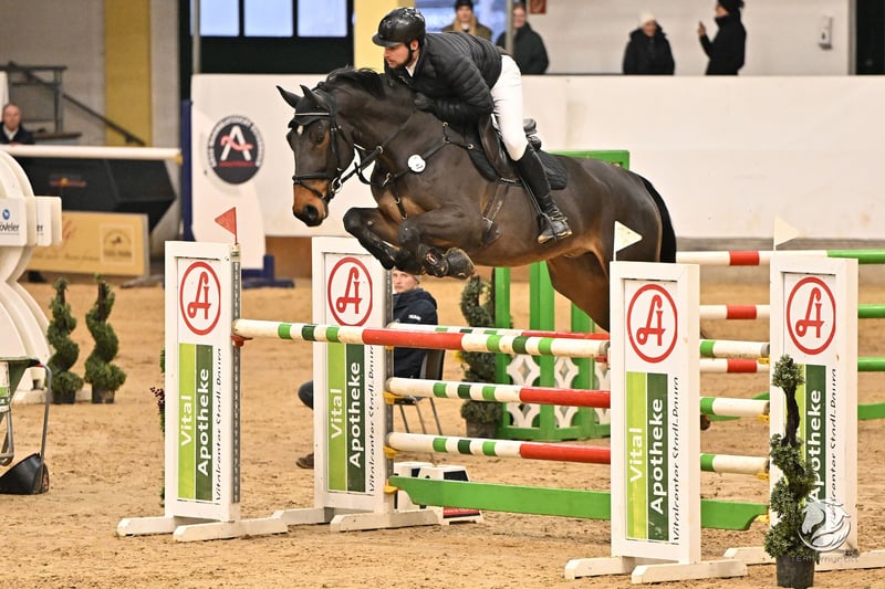 Questo stallone di 6 anni conquista fin dal primo momento per il suo ottimo temperamento e il suo atteggiamento tranquillo, sia nel lavoro quotidiano che in campo ostacoli. Già vittorioso nelle competizioni per giovani cavalli fino a 125 cm, dimostra costantemente qualità, chiarezza e autentico entusiasmo. Grazie alla sua naturale propensione al movimento e alla spinta al salto, infonde nel cavaliere un senso di fiducia e leggerezza. Nel maneggio è facile da gestire: obbediente, semplice, sensibile e sempre cordiale. Trasmette molta calma, rimanendo comunque attento e presente. Un cavallo di talento con tanto cuore e ancora più prospettive – ideale per i cavalieri che desiderano un giovane saltatore talentuoso, che renda divertente anche il lavoro quotidiano di dressage e ginnastica. Per ulteriori informazioni, contattare preferibilmente al +49 172 2850267.
