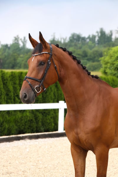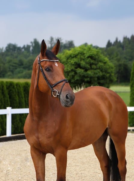 This 7-year-old gelding is a very calm and unflappable horse. He is in his prime and has received a highly versatile basic education. The gelding is familiar with leading lunging, sand paddocks, and turnout, both alone and in a group. Under saddle, he impresses with his composed and, above all, tranquil demeanor. He moves nicely in contact, is not overly sensitive in the mouth, and has a moderate amount of blood, which allows him to handle riders with less experience and more tentative aids very well. He can also be ridden with side reins. Ircos is familiar with longe work and is completely straightforward and fearless in that regard – we can also see him as a suitable candidate for liberty work! He is always motivated and eager to work, making him a good choice for an ambitious rider looking to further develop both themselves and their horse. Grid and cavaletti work, as well as small jumps, are no problem for him; he enjoys it and remains focused and motivated throughout. He also performs both flying and simple changes. He is an excellent horse to start jumping with. His absolute favorite activity is hacking out, which he does with incredible confidence and fearless composure. He handles every ride smoothly and provides his rider with a relaxing, enjoyable experience, whether alone or in a group. The gelding is completely street-safe, so there’s nothing standing in the way of a calm, relaxed trail ride. (See video) PLEASE WATCH THE ENTIRE VIDEO, INCLUDING THE TRAIL RIDE. • The height information is approximate and not precisely measured. • All descriptions are subjective assessments by the seller and are not guaranteed characteristics. X-rays show no findings, and a flawless clinical examination report is available. Interested? Feel free to contact us by phone at 015140555583. You can also reach us on weekends or public holidays.