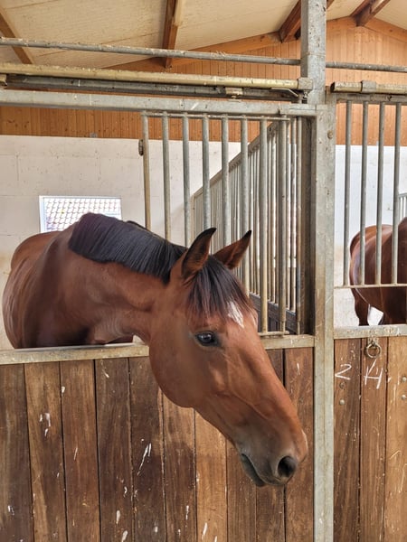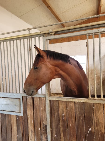 Je propose ici un superbe hongre de 8 ans, mesurant 1,70 m, avec une très bonne lignée de sang. Ce hongre est très gentil, offre un grand confort de selle et est très agréable à monter. Il est volontaire et prudent en saut, tout en étant également adapté pour la dressage. En saut d'obstacles, il a remporté des classes A, plusieurs classements en L et M. Même avec un cavalier moins expérimenté, il a obtenu des résultats en concours E et A (62 places). Il possède un excellent contrôle technique (TÜV) datant de fin mars, disponible sur demande. Seules les demandes sérieuses, merci. Vidéos disponibles sur demande. Également adapté pour le hunter !!!!!!!!