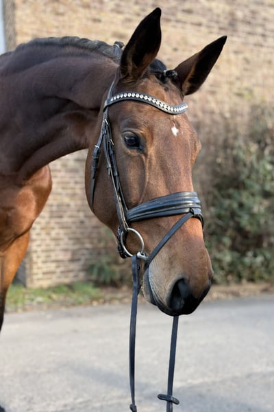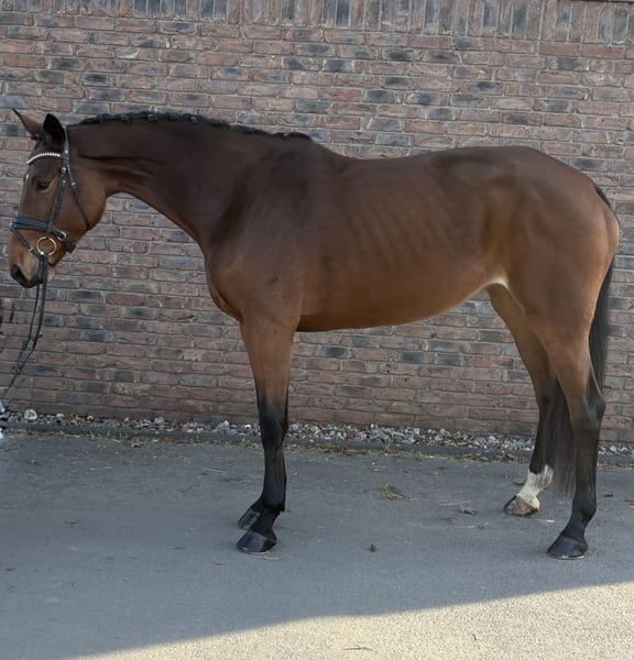 Violette a été mise en selle à la fin de ses 4 ans, puis présentée à 5 ans dans des épreuves de saut d'obstacles de niveau A et L. Elle a réussi à se classer jusqu'à la 2e place, avec des notes allant jusqu’à 8,2 en saut L. Par la suite, elle a eu deux poulains. Depuis début novembre, elle est de nouveau montée et prête pour ses premiers sauts. Étant sensible, elle nécessite un cavalier sûr de lui. Des radiographies récentes sont disponibles.