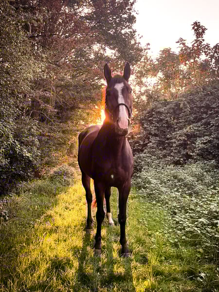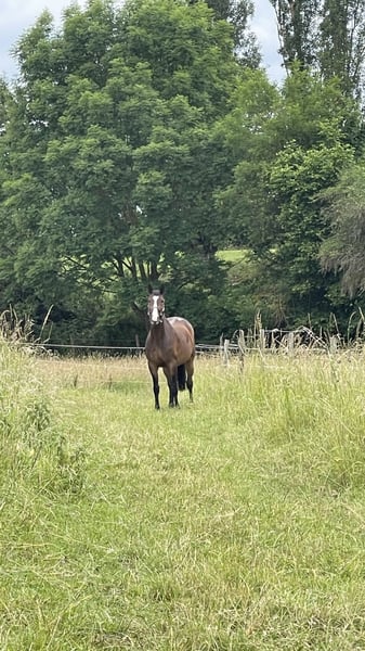 Vanwege persoonlijke redenen moet ik mijn geliefde paard Richi helaas van mij scheiden. Richi is een donkerbruine ruin, geboren in 2014 in Zweibrücken. Hij is afkomstig van Karat van het Greevenhof × Feiner Ludwig en heeft een stokmaat van 1,65 m. Hij beschikt over drie solide basisgangen en toont veel plezier en talent in het springen. Sinds hij bij mij is, is hij echter niet verder in springen getraind, daarom zijn er geen recente springvideo’s beschikbaar. Richi gaat braaf het bos in, zowel alleen als in een groep. Ook een ontspannen wandeling aan de halster vormt voor hem geen enkel probleem. In de kudde gedraagt hij zich volledig vertrouwd. Momenteel wordt hij door mij recreatief gereden. Hij is een paard dat met veel plezier in de dagelijkse werkzaamheden, een gezond basisritme en een vriendelijke, mensgerichte aard overtuigt. Desalniettemin is hij niet geschikt voor absolute beginners, omdat hij de dagelijkse training nodig heeft. Richi wordt regelmatig door de hoefsmid verzorgd, is ontwormd en gevaccineerd. Recent is de tandarts langs geweest en ook de osteopaat heeft hem regelmatig gecontroleerd, zodat hij goed verzorgd is. Ik wens voor Richi een nieuw thuis waar hij verder gestimuleerd wordt en waar hij net zo gewaardeerd wordt als bij mij. Het gaat niet om een dringende verkoop. Een recent keuringsrapport (TÜV) is niet aanwezig, maar kan bij interesse tegen vergoeding worden aangevraagd. Voor zover ik weet, heeft hij geen gezondheidsproblemen. Ik kijk uit naar jullie berichten.
