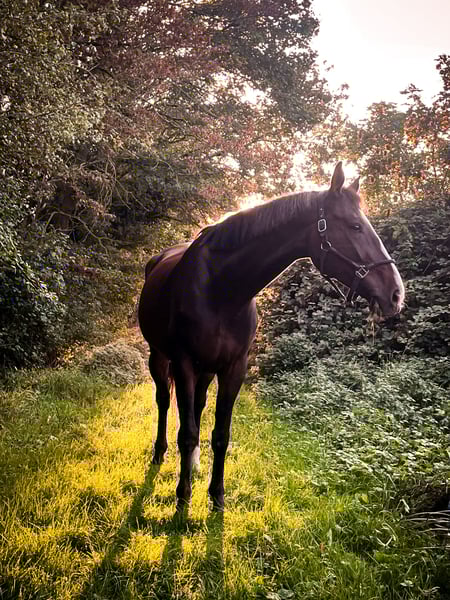 Z powodu osobistych przyczyn z ciężkim sercem muszę rozstać się z moim ukochanym koniem Richi. Richi to koń urodzony w 2014 roku, ciemnogniady wałach wyhodowany w Zweibrücken, o rodowodzie Karat van het Greevenhof × Feiner Ludwig, o wzroście 1,65 m. Posiada trzy solidne podstawowe chody i wykazuje dużą radość oraz talent do skoków. Od kiedy jest ze mną, nie był jednak dalej szkolony w skokach, dlatego nie posiadam aktualnych filmów z jego skokami. Richi chętnie chodzi na wycieczki terenowe – zarówno sam, jak i w grupie. Nie stanowi dla niego problemu spokojny spacer na lonży. W stadzie jest absolutnie towarzyski i dobrze się z innymi koniami dogaduje. Obecnie jeźdzę na nim rekreacyjnie. To koń, który swoim entuzjazmem do codziennej pracy, zdrowym tempem i przyjaznym, ludzkim charakterem zdobywa serca. Nie jest jednak odpowiedni dla absolutnych początkujących, ponieważ potrzebuje regularnej pracy i stymulacji. Richi jest regularnie strzyżony przez kowala, odrobaczany i szczepiony. Niedawno miał wizytę dentystę, a osteopatka regularnie go odwiedza, więc jest pod dobrą opieką. Marzę o tym, aby znalazł dom, w którym będzie dalej rozwijany i równie ceniony, jak u mnie. Nie jest to sytuacja kryzysowa. Aktualny certyfikat zdrowia nie jest dostępny, ale w razie zainteresowania można go wyrobić na koszt kupującego. Nie znamy żadnych chorób u Richiego. Będę wdzięczny za Państwa zapytania.
